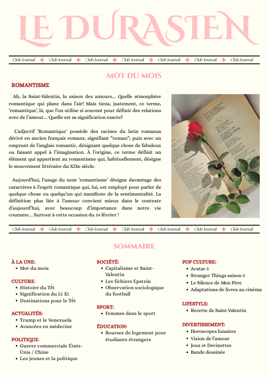 Le club journal du LFI Duras est fier de vous présenter le tout dernier numéro du Durasien !