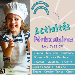 • Tarif : 55 € par activité et par semestre (3 activités maximum par enfant).