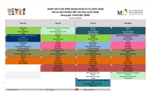 • La 1ère période 2025-2026 aura lieu du 6 octobre 2025 au 23 janvier 2026, du lundi au jeudi de 14h25 à 15h55.