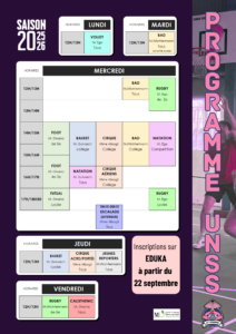 Retrouvez ci-après le planning UNSS pour la saison 2025-26 :