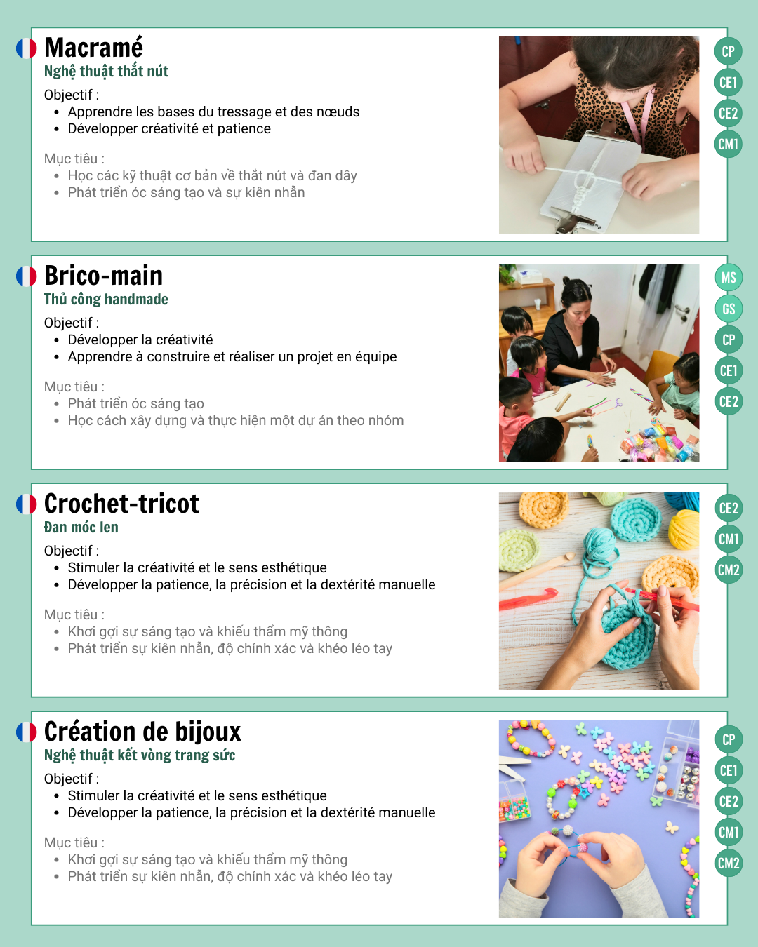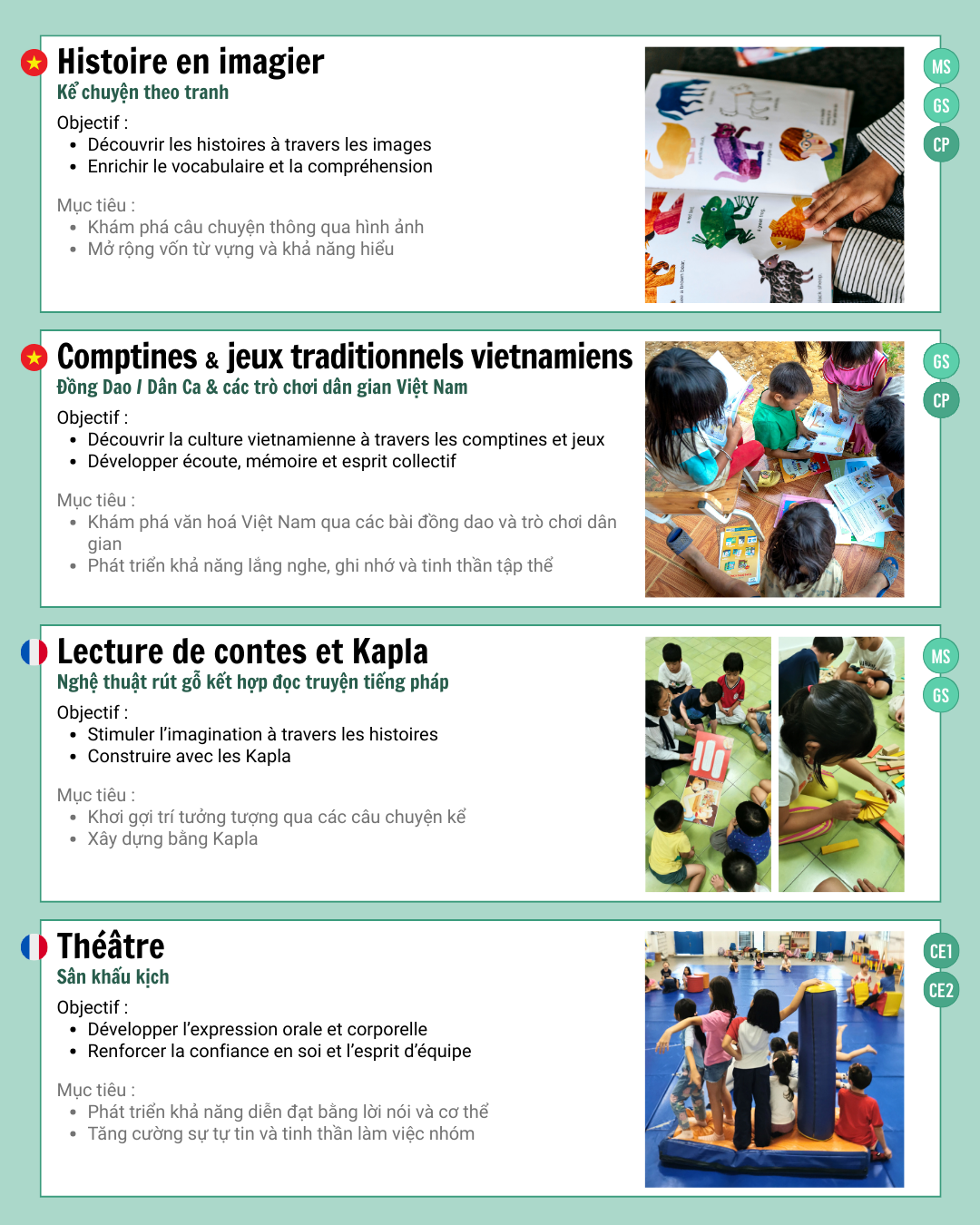 Les Activités Périscolaires (APS) proposées au LFI Duras pour la maternelle et le primaire permettent aux élèves de s’épanouir au-delà des cours.